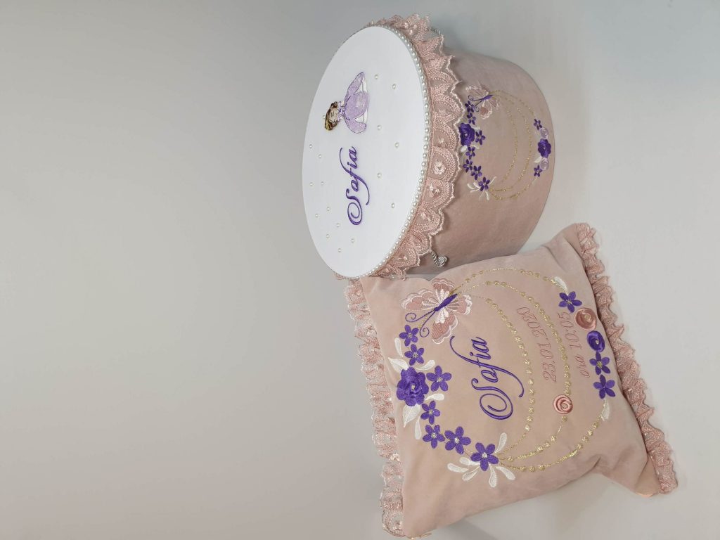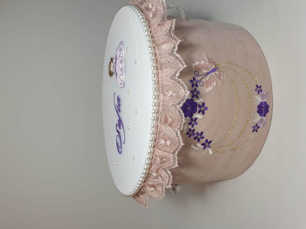Capacul cutiei brodat cu Mesaj sau NUME + DATĂ – 20 lei