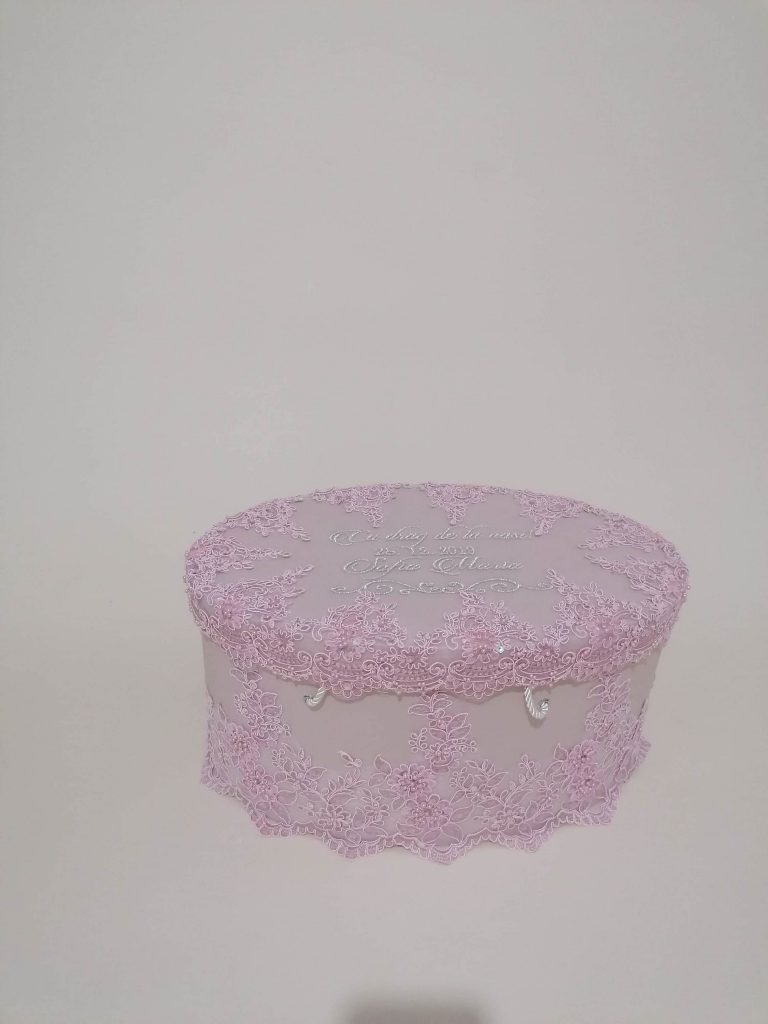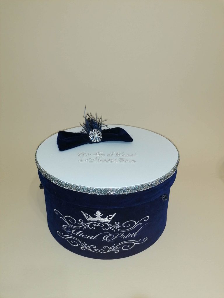 Capacul cutiei brodat cu fir metalic: Mesaj sau NUME + DATĂ – 40 lei